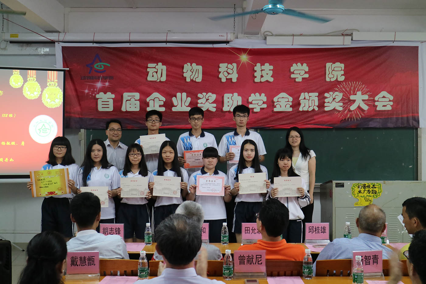 颁奖大会开始之际,全体参会人员观看了《2015-2016学年度动科院学生工作巡展》视频,展示了动科院学子积极向上、奋发图强的精神面貌,以及一年来在人才培养模式改革的背景下,动科院与各大科研院所和行业公司交流合作所取得的学生工作成果。
