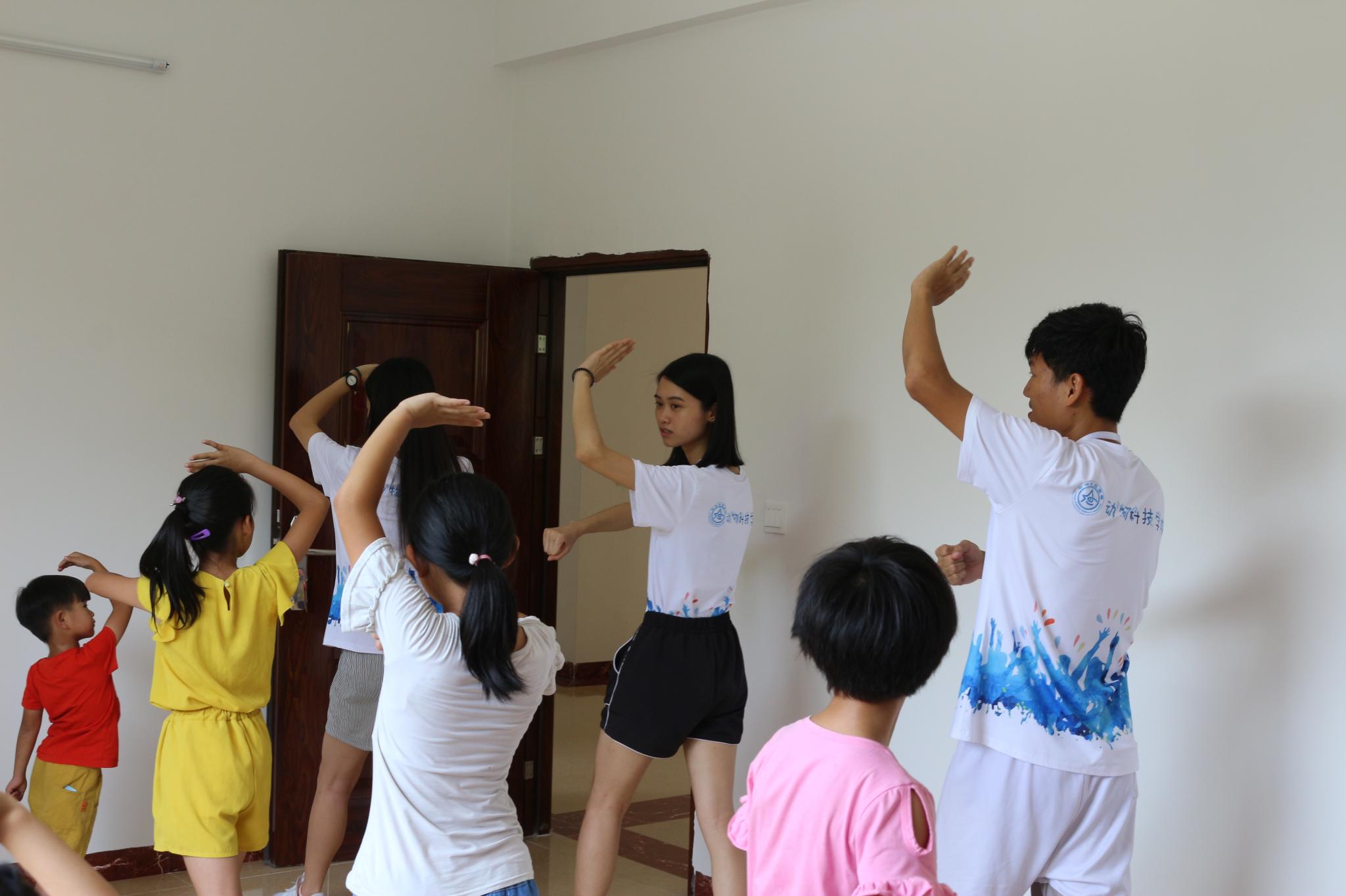 向书记一行首先来到良新村村委,beat365在线唯一官网三下乡实践队伍的义教组正在进行蔡李佛拳的教学活动,当地三十多个小朋友兵分三队,有条不仲紊地进行分组训练,小朋友们纷纷被这新颖的拳式所吸引,跟着“小老师”一招一式地学习。向书记一行还考察了义教文化课场地,听取了beat365在线唯一官网党总支副书记朱路平和辅导员许鸿的现场介绍,对实践队周密用心的准备和认真负责工作态度表示了肯定。