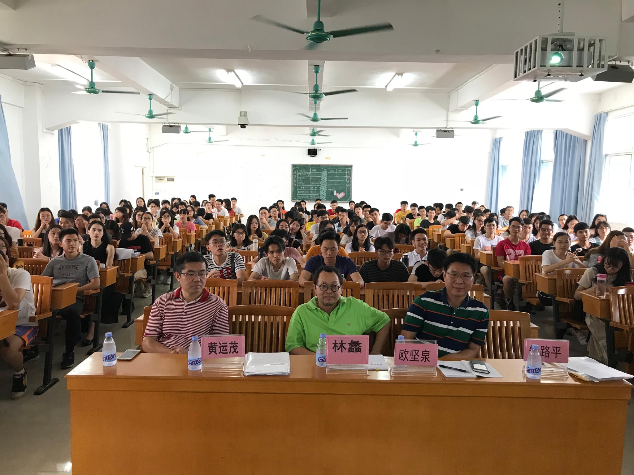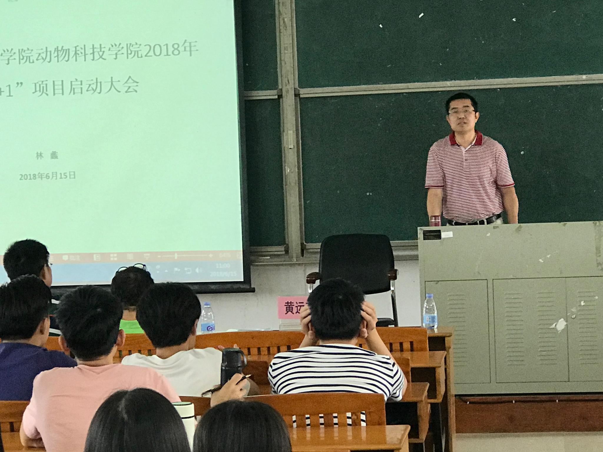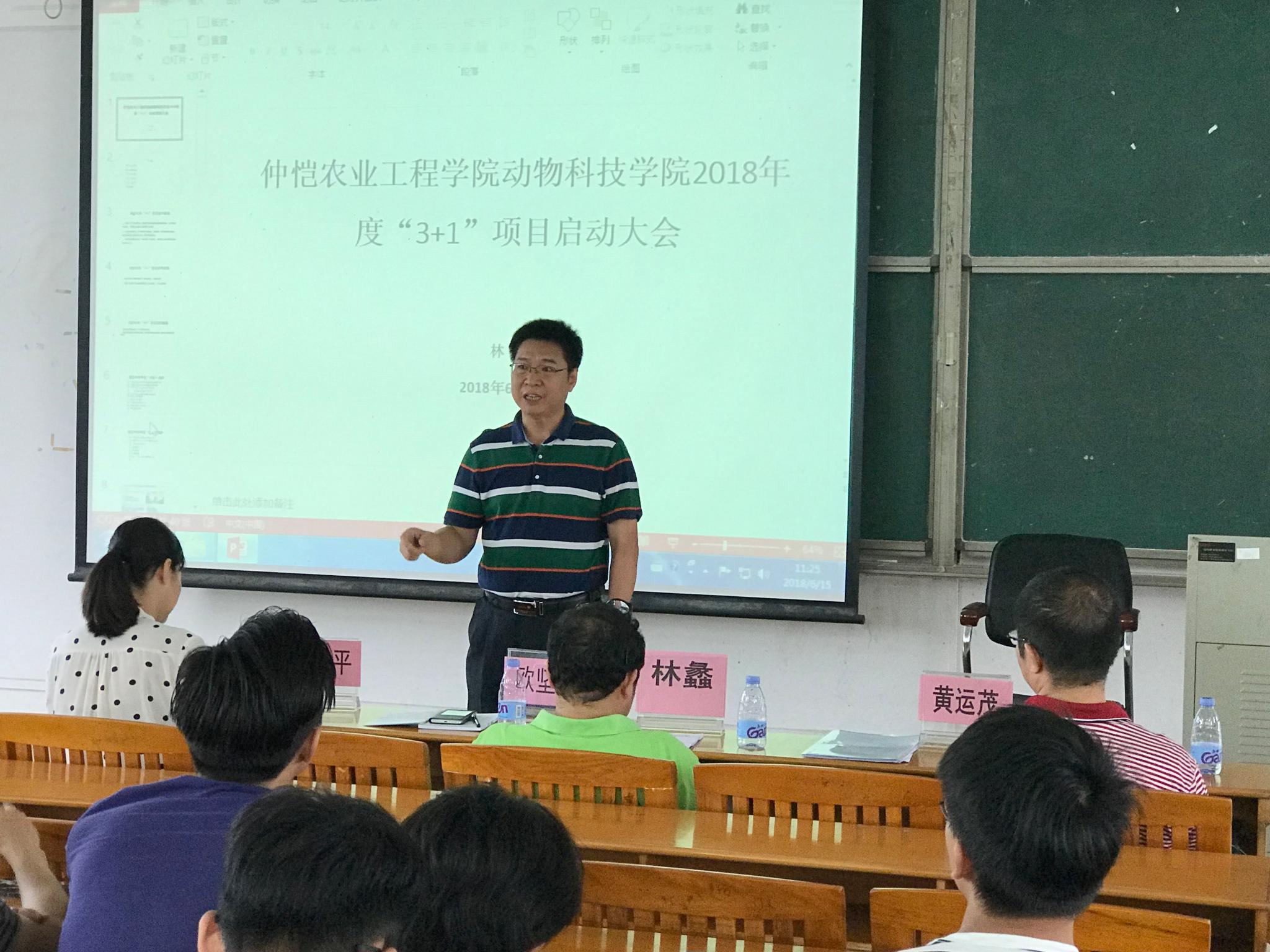 2018年6月15日上午10点,beat365在线唯一官网2015级学生卓越农林人才培养(简称“3+1”)实习动员大会在杨钊杨勋楼510课室顺利召开。beat365在线唯一官网党总支书记欧坚泉、院长林蠡、副院长黄运茂、党总支副书记朱路平、系主任李仕新、周萌、辅导员许鸿、教务员麦子韵出席了会议,2015级动物科学、水产养殖两个专业6个班176名学生参加了动员大会。