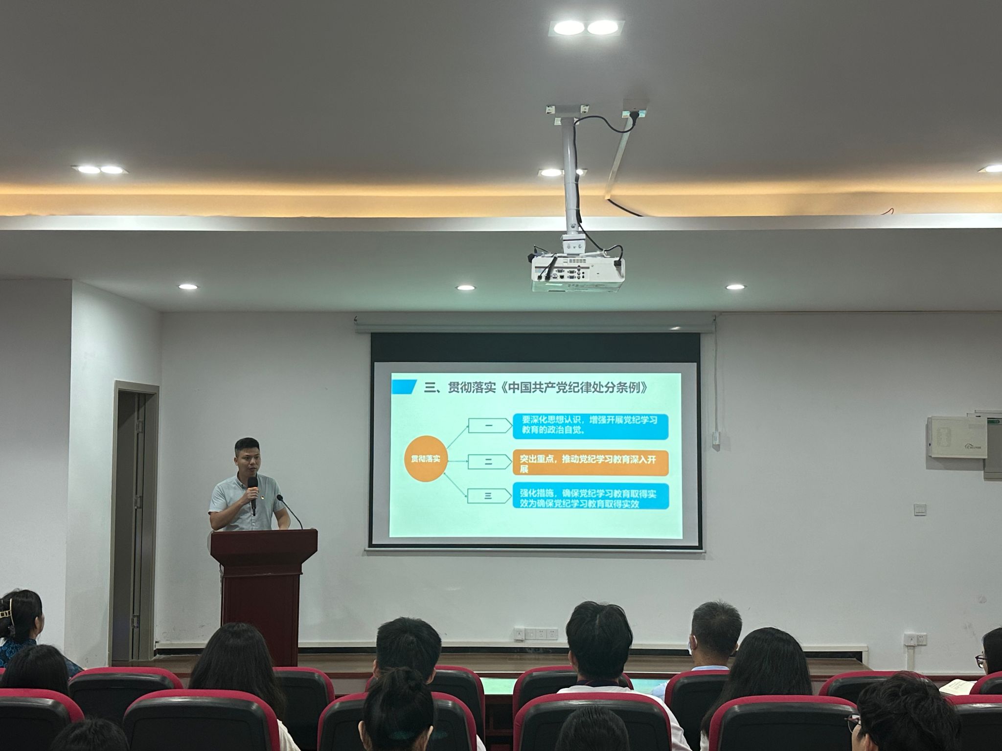 2024年4月24日,beat365在线唯一官网在白云校区生命科学大楼B座609开展党纪学习教育部署会暨《中国共产党纪律处分条例》解读专题党课。本次部署会暨专题党课由学院党委书记朱路平主讲,学院全体本科生党员参加。本次部署会暨专题党课旨在引导学院全体党员深入学习、理解党的纪律处分条例,强化党性修养,提高党员的政治素质。