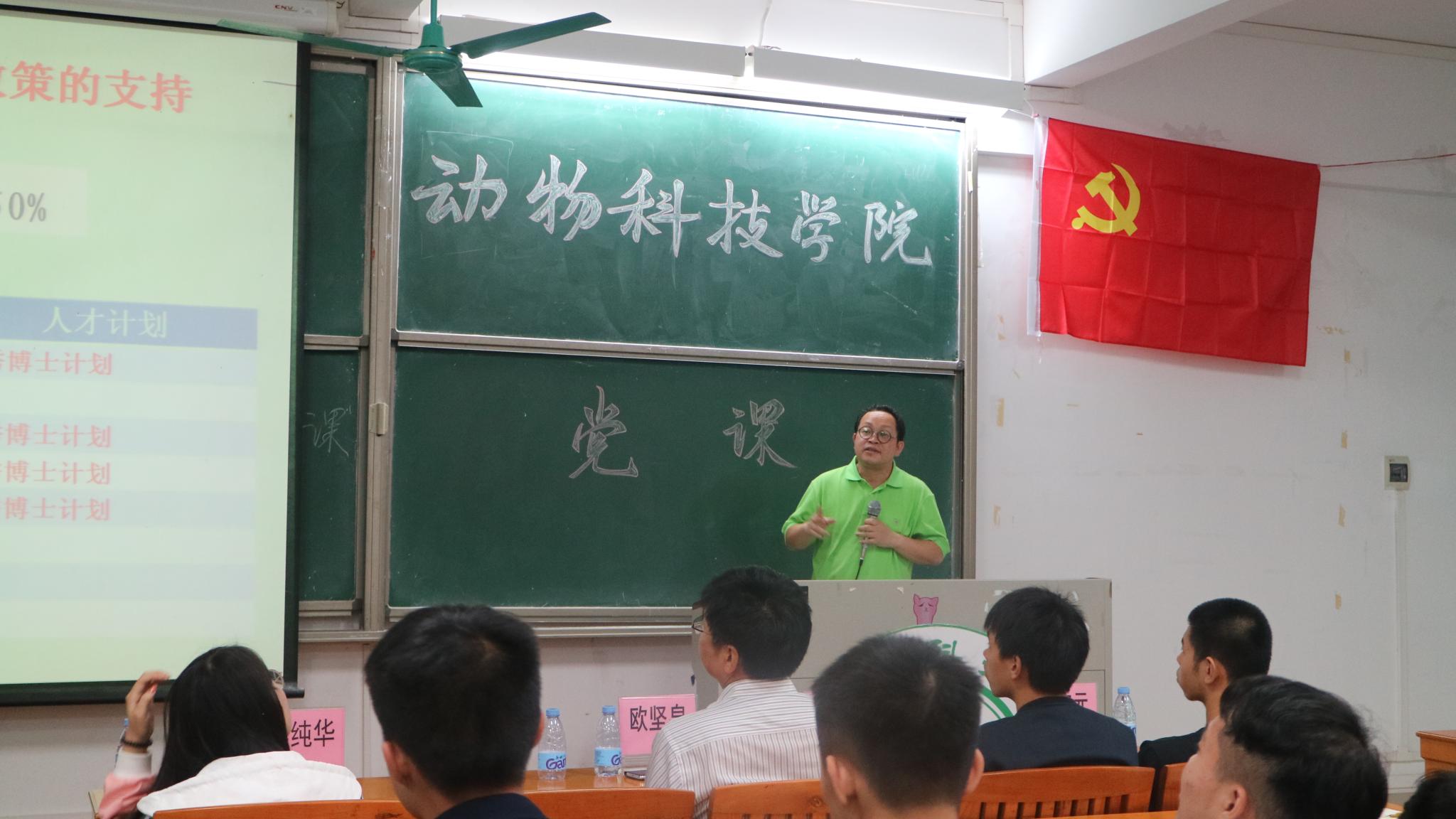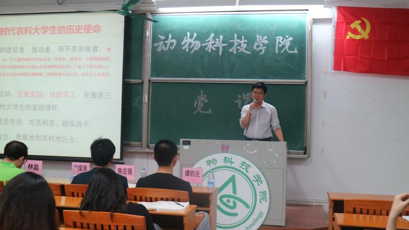 3月28号晚上,beat365在线唯一官网党总支书记欧坚泉、院长林蠡在白云校区曾宪梓楼205为动科、水产专业的学生讲授了本学期第一堂思政课。