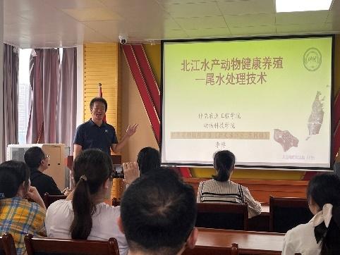 特派员团队充分发挥专业优势,针对当地水产养殖的实际情况,开展了多项针对性强、实用性高的培训活动。其中北江鱼类健康养殖的关键技术,从科学投喂、疾病预防到生态养殖模式的推广,为养殖户提供了全方位的技术指导;北江水产动物健康养殖中的尾水处理技术,助力养殖户实现生态与经济的双赢。澳洲小蓝龙健康养殖专题培训则结合当地养殖环境和市场需求,为农户提供了科学的养殖方案和技术支持。