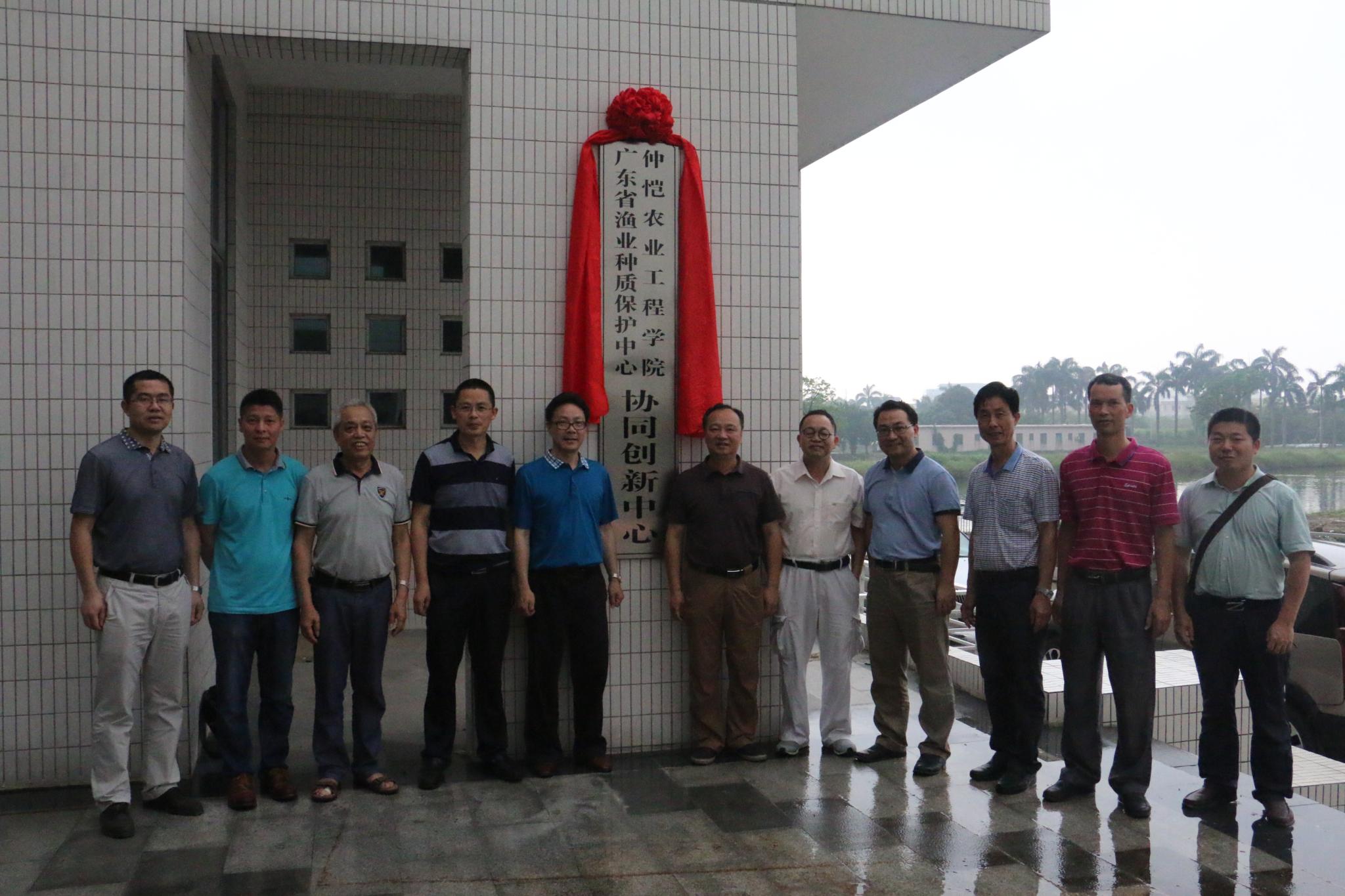 2017年5月22日下午,beat365在线唯一官网与广东省渔业种质保护中心合作共建的“协同创新中心”,在位于广州市番禺区的广东省渔业种质保护中心正式成立,学校副校长田允波、渔业中心主任刘付永忠代表双方单位揭牌。出席揭牌仪式的还有广东水产学会会长吴灶和,仲恺领军学者林蠡教授、beat365在线唯一官网党总支书记曾献尼、副院长黄运茂、计算科学学院副院长杨灵,渔业中心副主任黄如寿、陈辉崇,番禺海洋与渔业局处长吴瑞荣,广州华大锐护科技有限公司董事长殷波、总经理舒锐等。