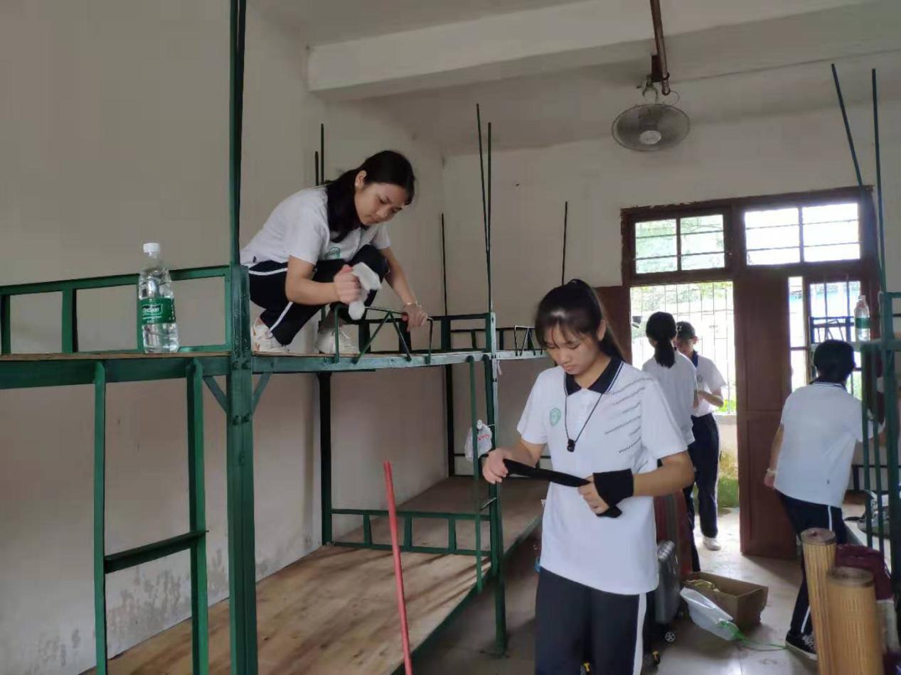 经过两个多小时的车程,调研宣传队住宿地新丰县马头中学。马头中学潘志明校长、余家乐主任、李国杰副主任以及校团委付新延书记带领队员们进入学校安排住宿,随后队员们开始清理内务卫生,把宿舍打扫得干干净净,营造一个良好的环境。