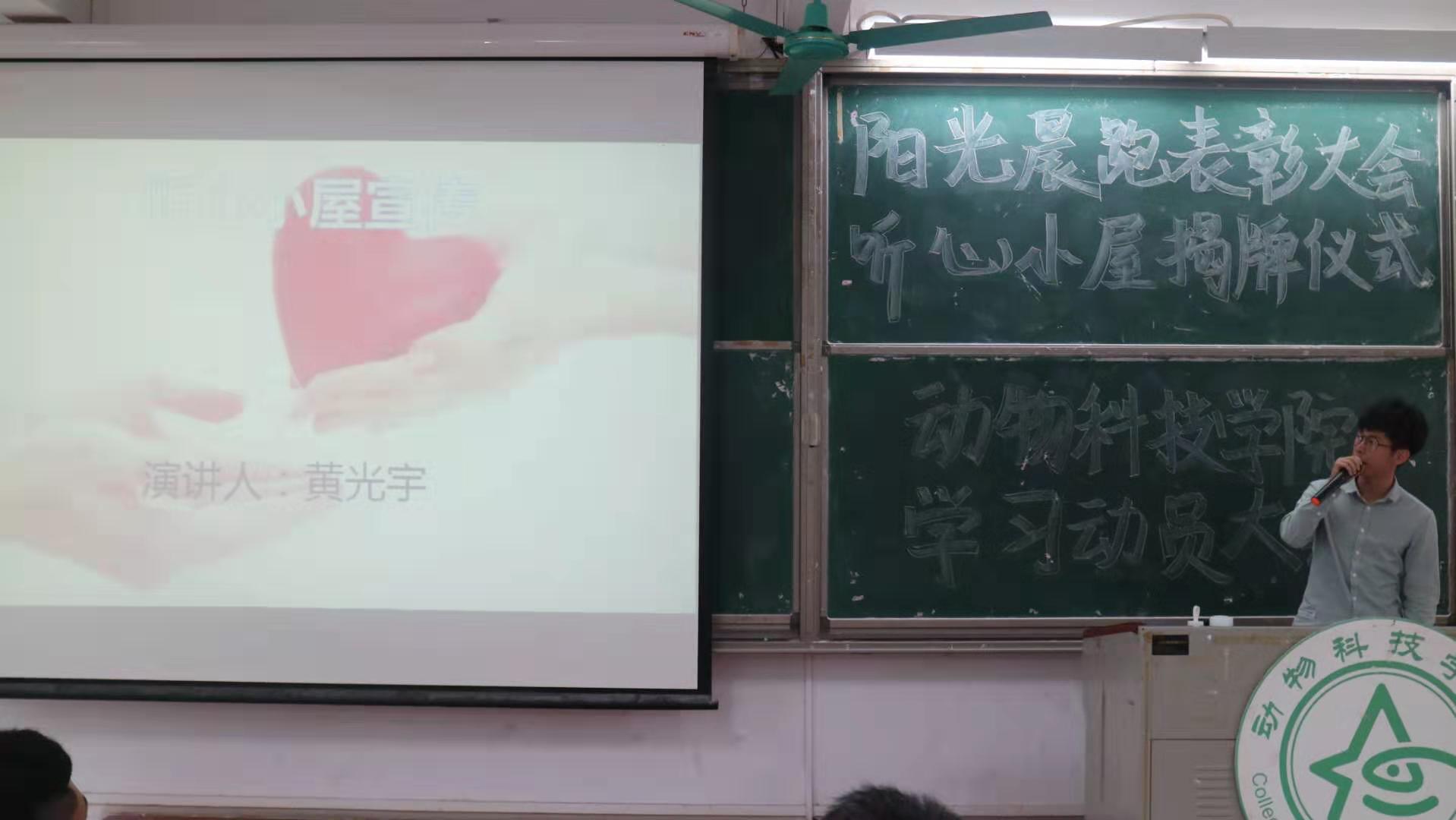 仪式的第一个流程是权益部的代表黄光宇同学发言。他向同学们阐明了听心小屋的活动宗旨和心理咨询的四大原则,详细的解释了心理咨询的问题类型和解决方法,以及预约听心小屋的方法。beat365在线唯一官网辅导员李博也在仪式上指出,同学们都应该正确看待心理问题,塑造良好的心理健康氛围,及时排解负面的情绪。在仪式的最后,李博老师为听心小屋进行了揭牌,到此,本次仪式就此落下帷幕。