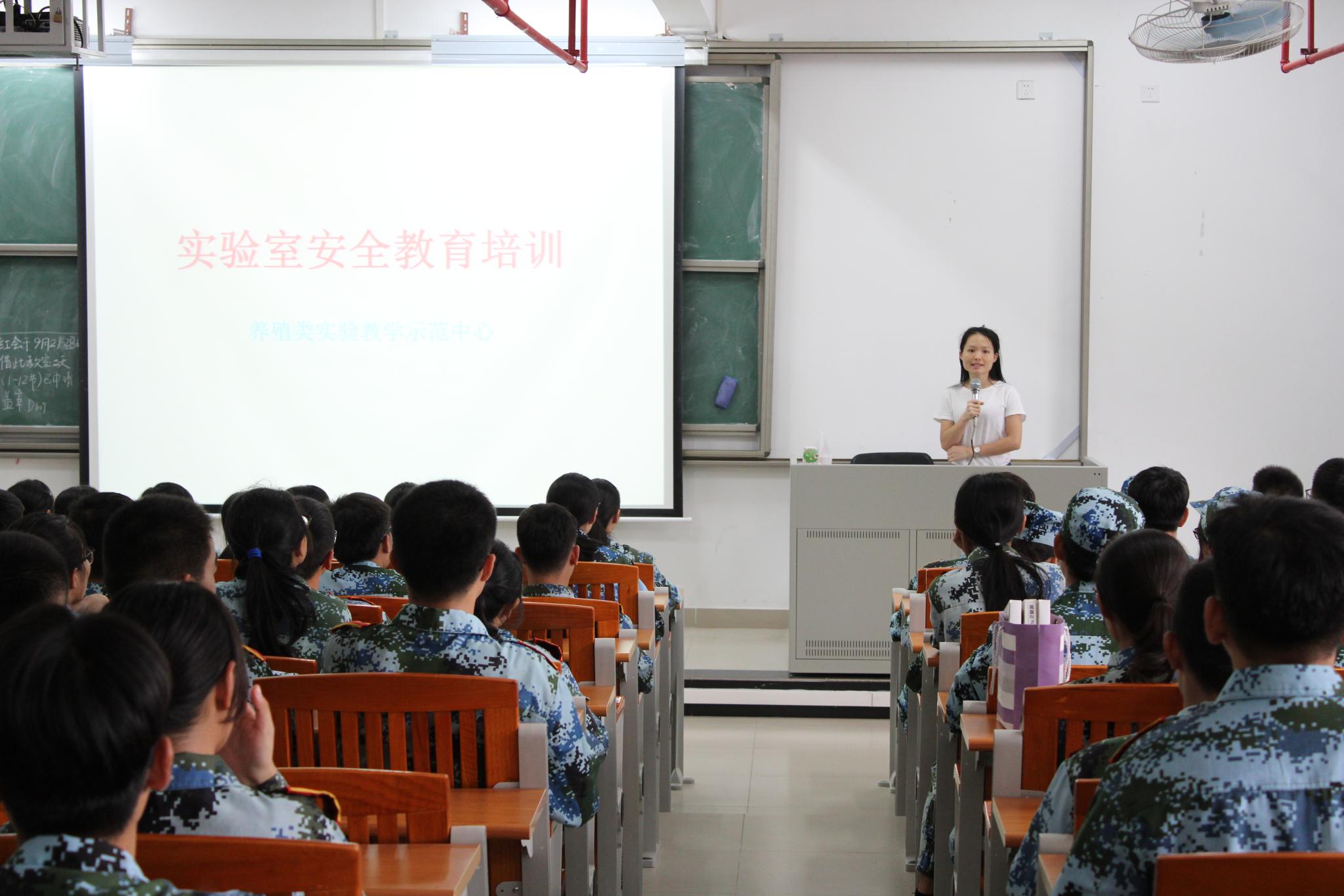首先,在白云校区D栋D607教室开展实验室安全教育培训,由实验中心莫金凤、唐军、杨丹丹三位老师组织安排并主讲。唐军老师首先为新生们讲解了化学实验室的相关情况。他以高校发生的实验室爆炸为切入点,生动形象地展示了不规范操作、安全意识淡薄所造成的严重后果。接着唐老师对实验室规章制度进行了介绍,强调实验室内禁止吃东西、煮东西等有安全隐患的行为。随后唐老师以图文并茂的形式,介绍实验室的设备安全问题,包括高压设备、低温设备的使用和废弃物的处理等。