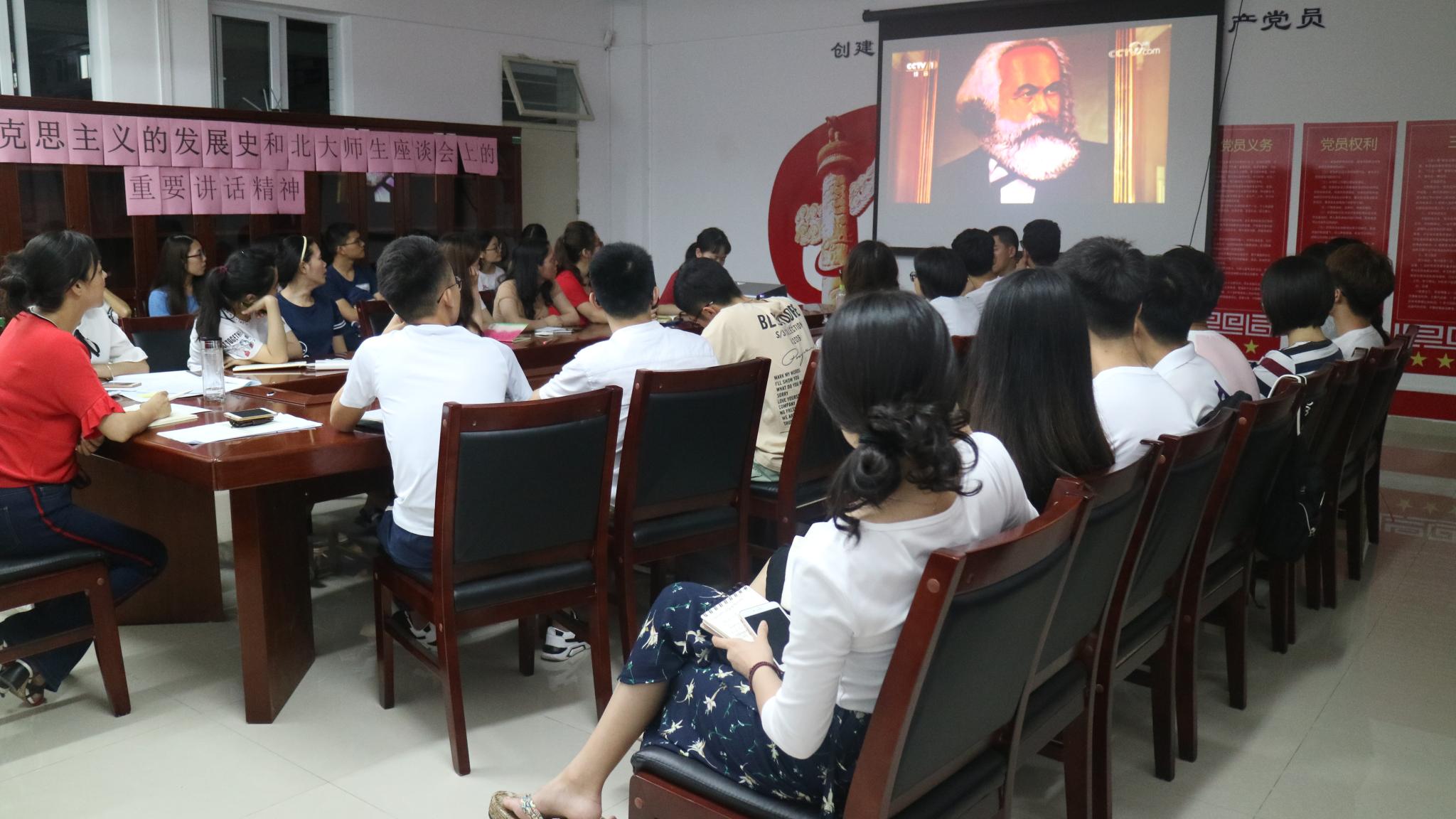 5月16日晚上七点,beat365在线唯一官网学生党支部在白云校区A313集中学习习近平总书记在北京大学师生座谈会上的讲话精神和在纪念马克思诞辰200周年大会上重要讲话精神。学院党总支副书记朱路平、辅导员许鸿、学生党员、第56期发展对象以及入党积极分子出席了本次会议。