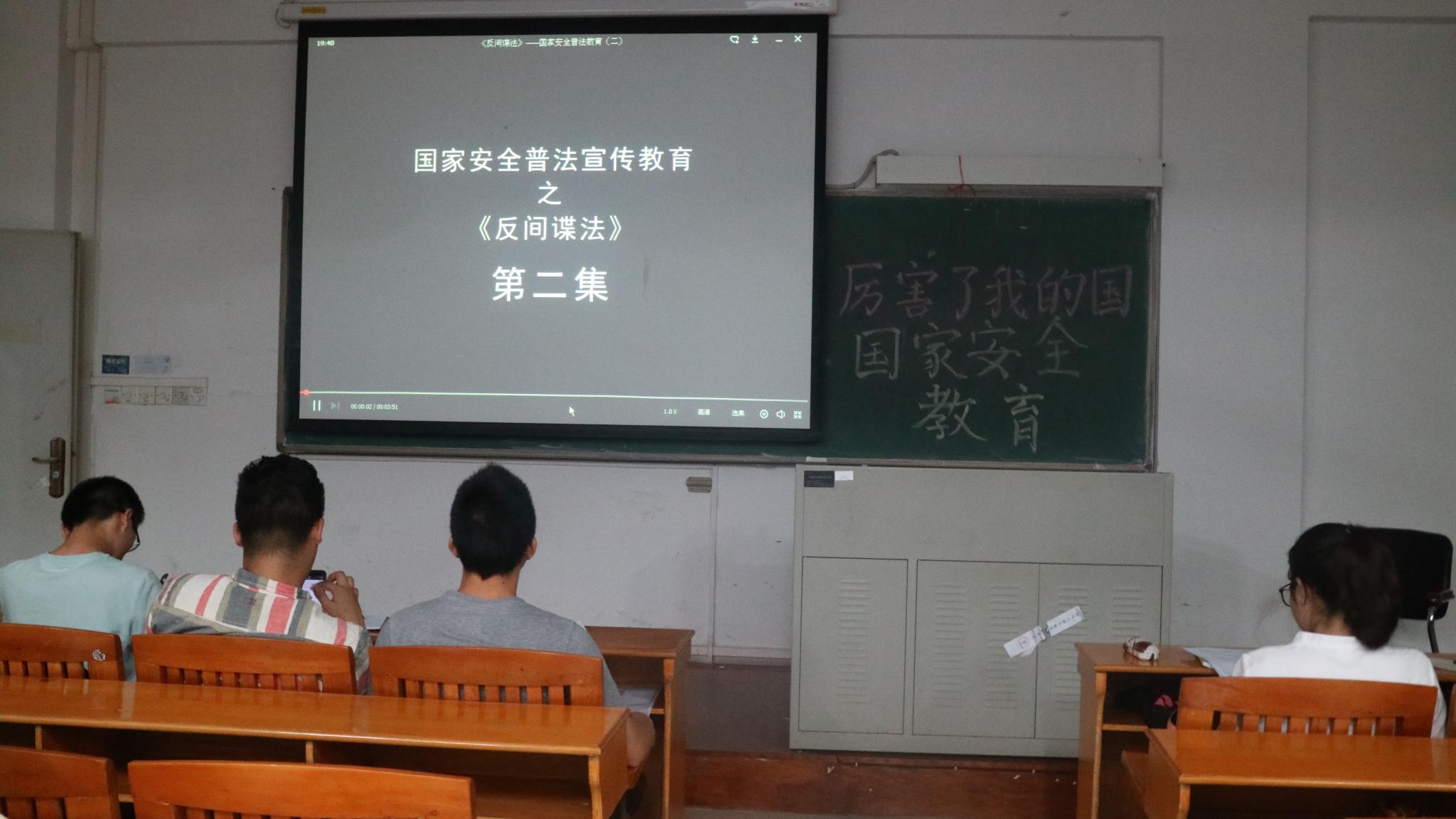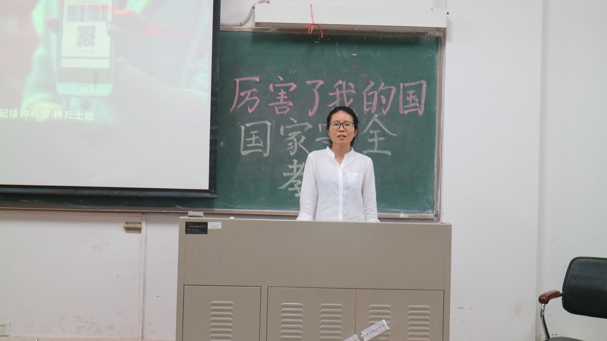 影片结束,学生党支部书记许鸿总结发言,所有人应当从宣传片中学到新的知识,热爱我们的祖国。同时鼓励在座的所有人不忘初心,砥砺前行。站在新的历史起点,我们唯有以永不懈怠的精神和一往无前的奋斗姿态朝着中华民族伟大复兴的宏伟目标前进,方不负这大国风采,不负这美好时代!希望你们在不久将来,为祖国繁荣发展献出自己的一份力。并建议大家应当多看类似宣传片,通过国家安全教育系列活动的启发,加强法制观念,树立保卫国家、匹夫有责的大局意识。