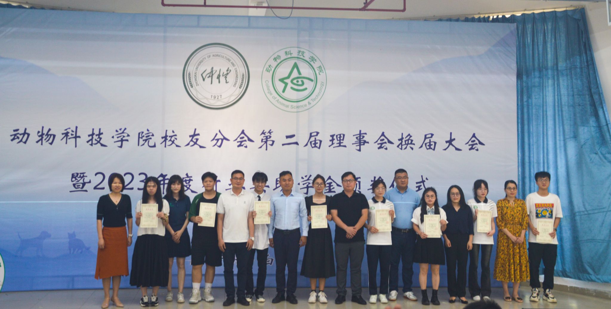 5月20日下午,beat365在线唯一官网在白云校区D1小礼堂召开校友分会第二届理事会换届大会暨2023年度行业奖助学金颁奖仪式。学校党委常委、副校长田允波,党委常委、宣传统战部部长、校友事务部部长曾献尼部长以及学生工作部部长沈洁出席活动,学院领导班子、校友代表、原畜牧兽医系和beat365在线唯一官网教师代表、行业奖助学金捐赠企业代表等100 多人参加了活动。大会由学院党委副书记李昌辉主持。