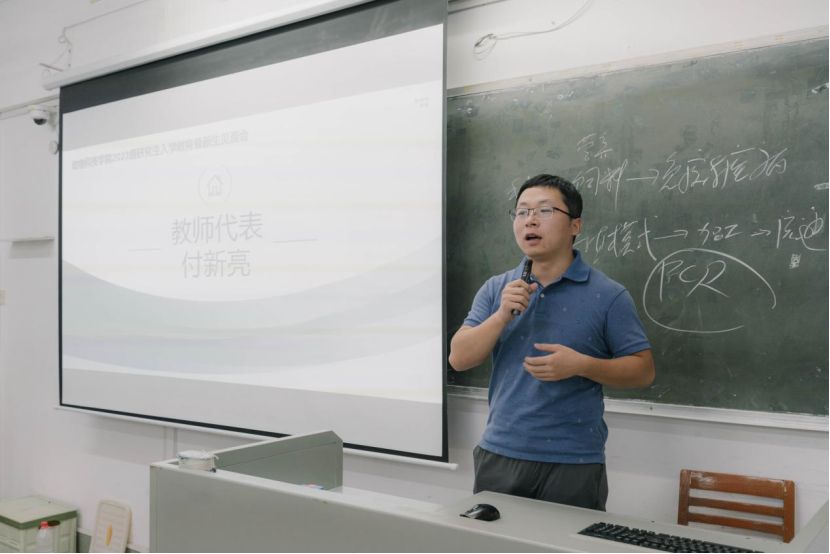 紧接着,付新亮、欧阳宏佳、秦真东作为教师代表进行发言。他们勉励大家从研一开始就要多用功勤钻研,重视文献的阅读,提高自身实验操作技能,学会分析总结,及时与导师沟通,要热爱所学的专业才能有专业自信,规划好阶段性目标并努力完成,同时也要注意自己的身心健康。