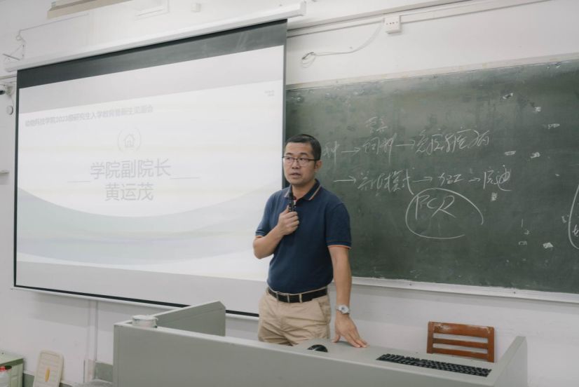 黄运茂介绍了学院学科建设及研究生培养的基本情况,要求同学们珍惜实验资源,多看专业文献,提升自己的专业理论基础及实验理论基础,多与导师交流研究方向和想法,更好的完成自己的学业。
