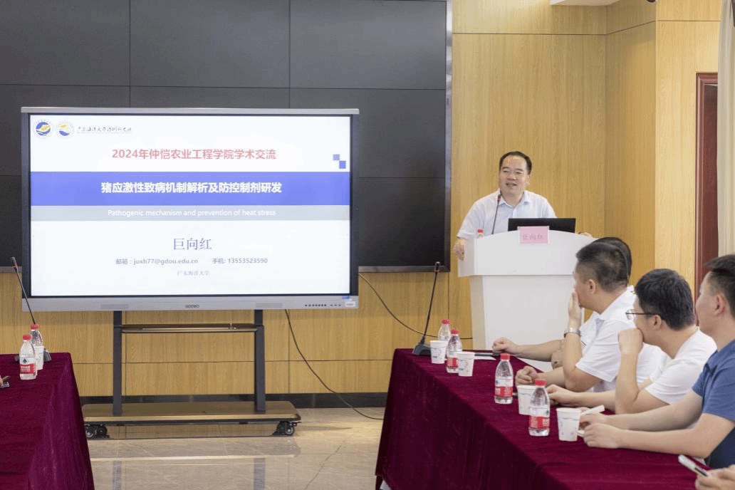 根据学校科学技术部科学技术月活动安排,6月12日下午由校科学技术部主办,beat365在线唯一官网承办的学术报告会在海珠校区孵化园多媒体教室举行,会议特邀了广东海洋大学巨向红教授做了题为《猪应激致病的机制解析及防控制剂开发》的学术报告。科学技术部副部长王玮、beat365在线唯一官网副院长黄运茂、副院长刘文俊出席报告会,beat365在线唯一官网教师和学生代表50余人参加了报告会,报告会由黄运茂主持。
